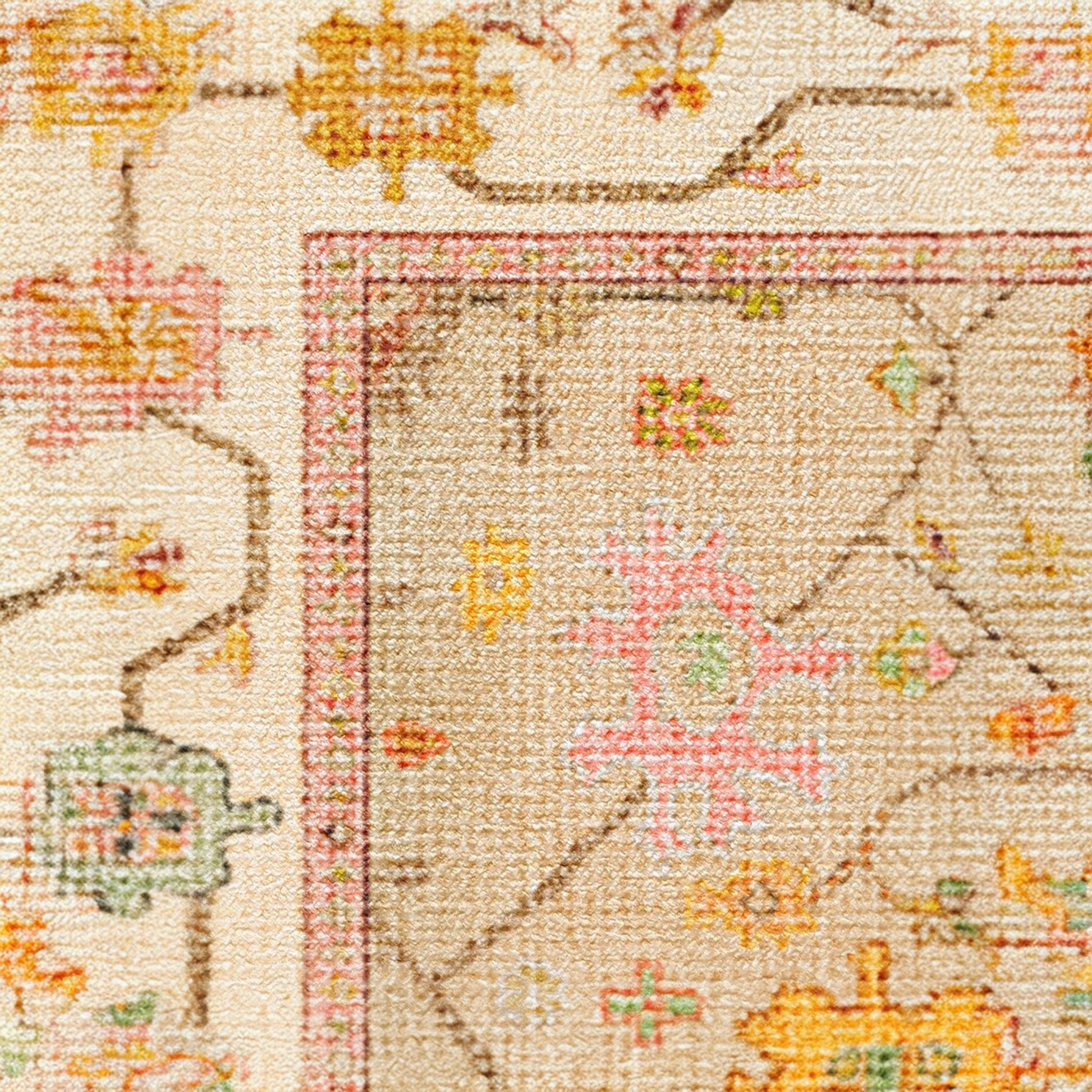 Introduce a touch of artisanal warmth to your home with the Jemima Neutral Multicolor Rug. This piece reimagines traditional folk-inspired motifs in a sophisticated, muted palette. Delicate shades of sage green, soft clay, and dusty blue are woven into a creamy neutral background, creating a visual story that feels both storied and fresh. With its intentionally weathered effect, this rug brings the charm of a hand-loomed antique into the modern, practical home.